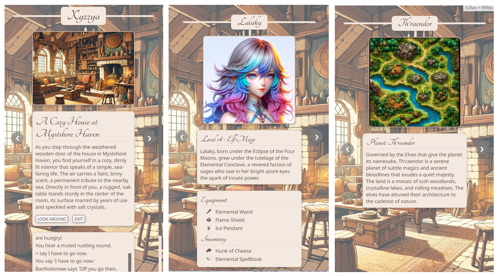 You can see that the font choices are more refined, providing a clear and pleasant reading experience while still dripping with character. The layout is intuitive, and the buttons beckon with a subtle invitation to interact. It's a layout that not only serves the functionality but also the fantasy.