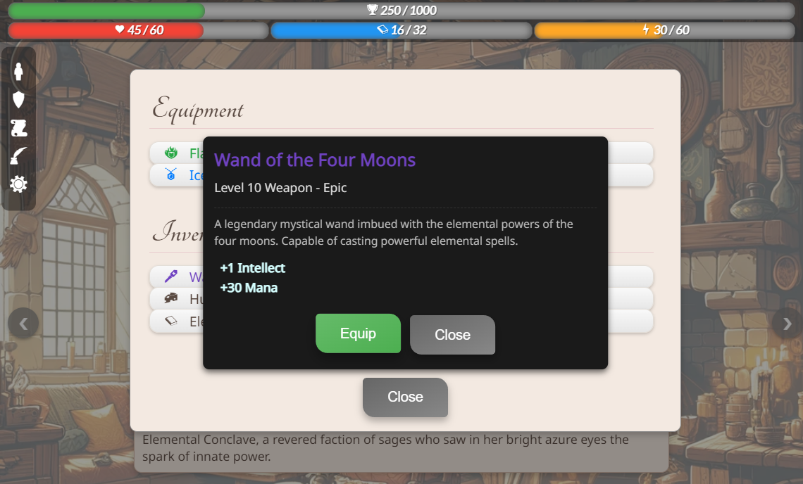 Every adventurer knows that the gleam of an item can tell its tale. We've sprinkled a bit of magic dust on our Items Modal to reveal the rarity of each gear piece. Now, as you peruse your trove of treasures, you'll see them shimmer in hues of Uncommon Green, Rare Blue, or the coveted Epic Purple.