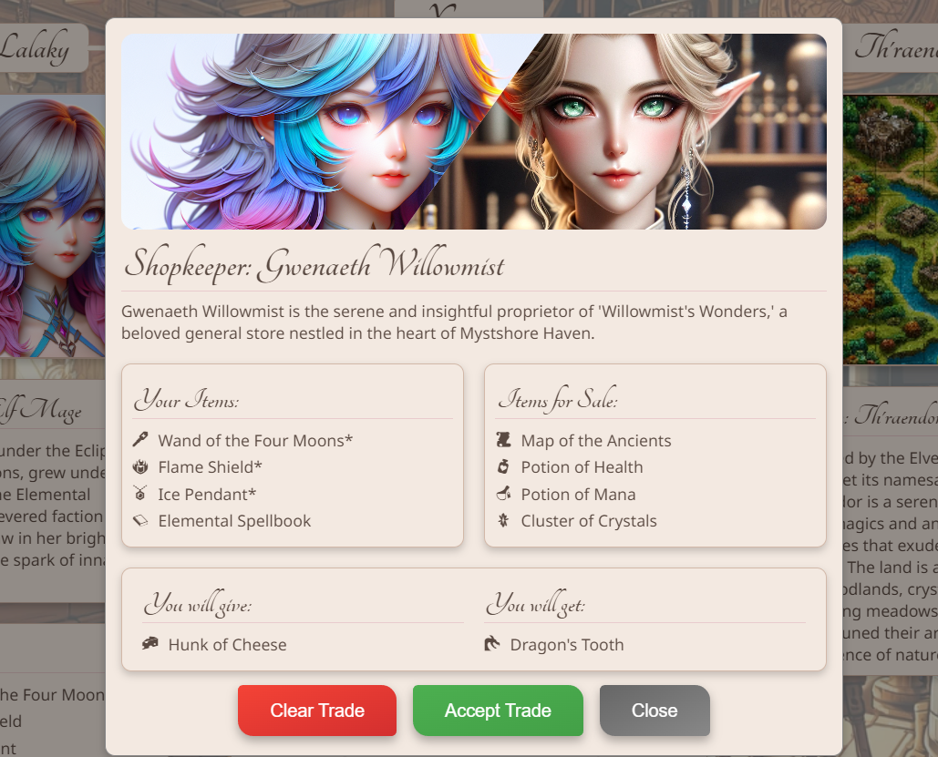 Sometimes, it's the small additions that make the biggest impact. To enhance your trading experience, we've added a "Close" button to the Trade modal. Now, you can gracefully exit your trade negotiations with a simple click, with the ability to return with your in-progress trade intact. It's all about making your journey through Xyzzya as seamless as possible.